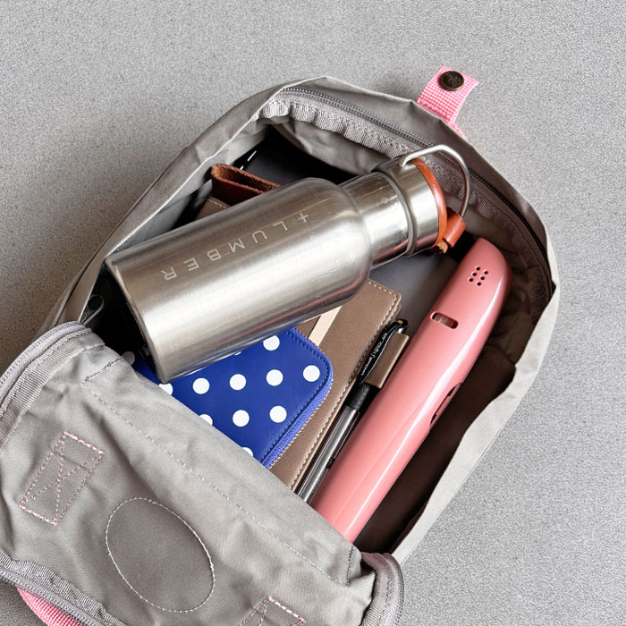 フェールラーベン / カンケンオリジナル 仕事にも使いたくなる16L。横のポケットは日傘もすっぽりです。見た目以上に入るのでは⁉ |